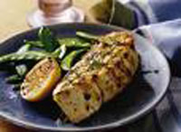 Grill 4-5 minutes on each side. Test with fork. Halibut should flake when pierced on edge with fork.